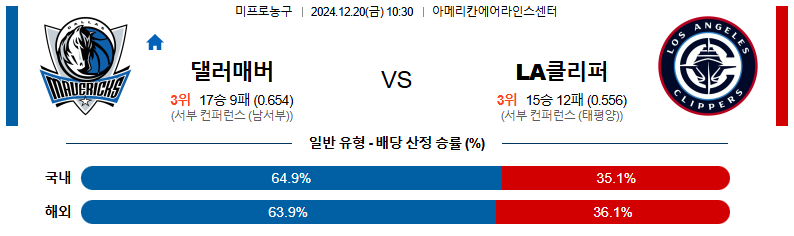 댈러스 대 LA클리퍼스 NBA 12월20일 맞대결 생중계, 스포츠중계, 스포츠분석
