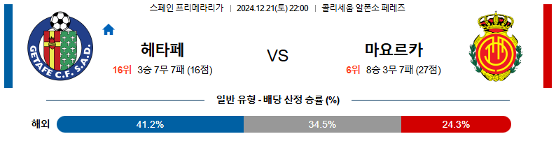 헤타페 대 마요르카 라리가 12월21일 맞대결 생중계, 스포츠중계, 스포츠분석