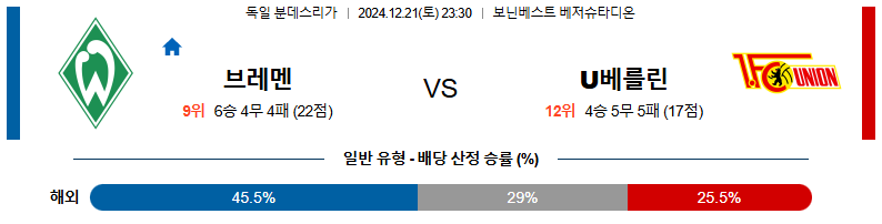 브레멘 대 우니온베를린 분데스리가 12월21일 맞대결 생중계, 스포츠중계, 스포츠분석
