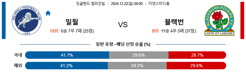 밀월 대 블랙번 잉글랜드챔피언쉽 12월22일 맞대결 생중계, 스포츠중계, 스포츠분석