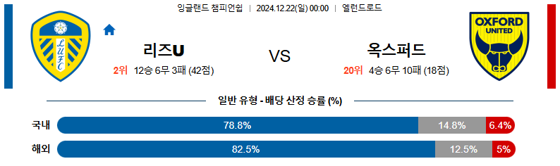 리즈 대 옥스퍼드 잉글랜드챔피언쉽 12월22일 맞대결 생중계, 스포츠중계, 스포츠분석