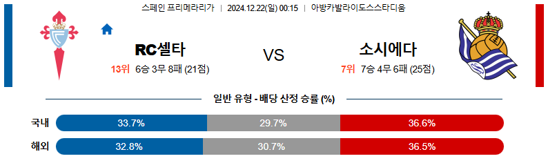 셀타비고 대 소시에다드 라리가 12월22일 맞대결 생중계, 스포츠중계, 스포츠분석