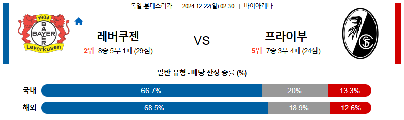레버쿠젠 대 프라이부르크 분데스리가 12월22일 맞대결 생중계, 스포츠중계, 스포츠분석