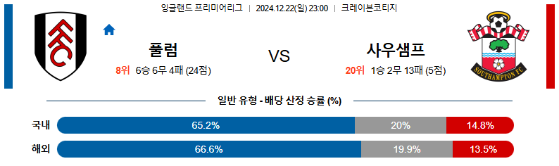 풀럼 대 사우샘프턴 EPL 12월22일 맞대결 생중계, 스포츠중계, 스포츠분석