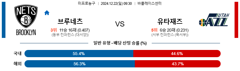 브루클린 대 유타 NBA 12월22일 맞대결 생중계, 스포츠중계, 스포츠분석