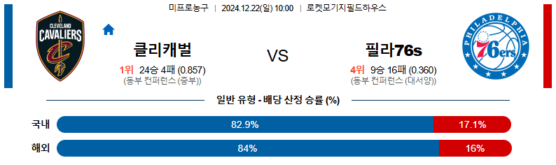 클리블랜드 대 필라델피아 NBA 12월22일 맞대결 생중계, 스포츠중계, 스포츠분석