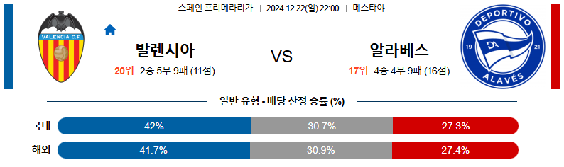 발렌시아 대 알라베스 라리가 12월22일 맞대결 생중계, 스포츠중계, 스포츠분석