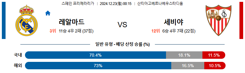 레알마드리드 대 세비야 라리가 12월23일 맞대결 생중계, 스포츠중계, 스포츠분석