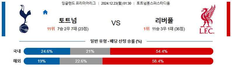 토트넘 대 리버풀 EPL 12월23일 맞대결 생중계, 스포츠중계, 스포츠분석