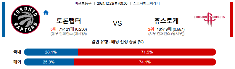 토론토 대 휴스턴 NBA 12월23일 맞대결 생중계, 스포츠중계, 스포츠분석