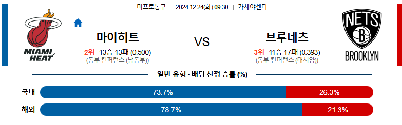 마이애미 대 브루클린 NBA 12월24일 맞대결 생중계, 스포츠중계, 스포츠분석