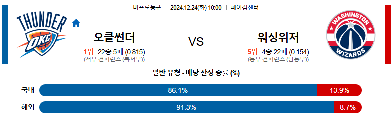 오클라호마 대 워싱턴 NBA 12월24일 맞대결 생중계, 스포츠중계, 스포츠분석