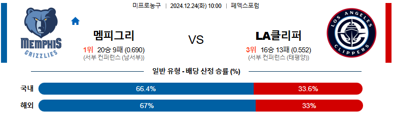 멤피스 대 LA클리퍼스 NBA 12월24일 맞대결 생중계, 스포츠중계, 스포츠분석