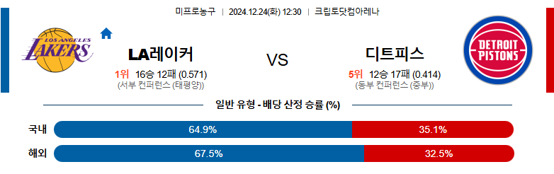 LA레이커스 대 디트로이트 NBA 12월24일 맞대결 생중계, 스포츠중계, 스포츠분석