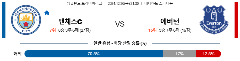 맨시티 대 에버턴 EPL 12월26일 맞대결 생중계, 스포츠중계, 스포츠분석
