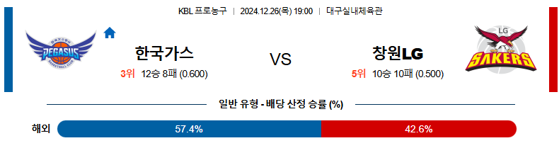 대구한국가스공사 대 창원LG KBL 12월26일 맞대결 생중계, 스포츠중계, 스포츠분석