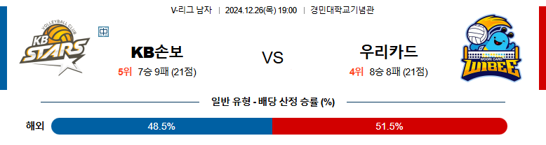 KB손해보험 대 우리카드 V리그 12월26일 맞대결 생중계, 스포츠중계, 스포츠분석