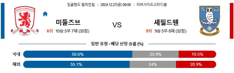 미들즈브러 대 셰필드WED 챔피언쉽 12월27일 맞대결 생중계, 스포츠중계, 스포츠분석