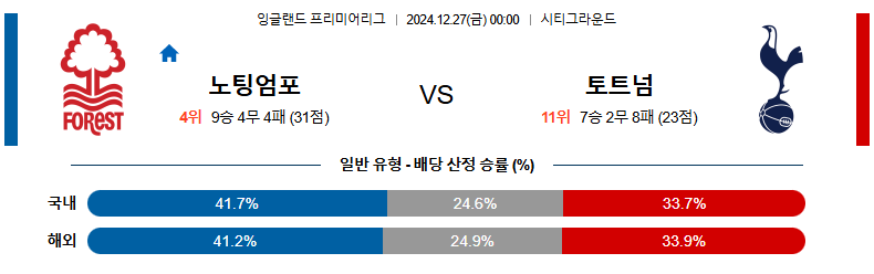 노팅엄 대 토트넘 EPL 12월27일 맞대결 생중계, 스포츠중계, 스포츠분석