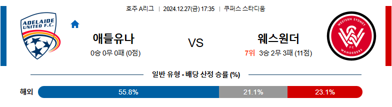 애들레이드 대 웨스턴시드니 A리그 12월27일 맞대결 생중계, 스포츠중계, 스포츠분석