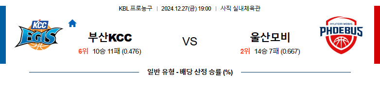 홈팀: 부산 KCC 이지스 (10승 11패)