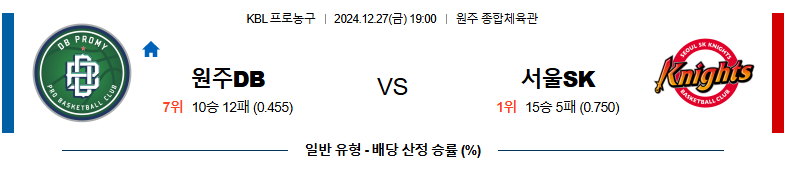 원주DB 대 서울SK KBL 12월27일 맞대결 생중계, 스포츠중계, 스포츠분석