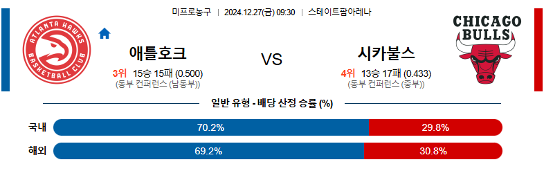 애틀란타 대 시카고 NBA 12월27일 맞대결 생중계, 스포츠중계, 스포츠분석