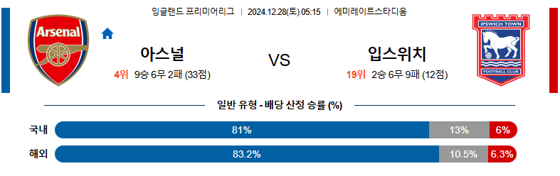 아스날 대 입스위치 EPL 12월28일 맞대결 생중계, 스포츠중계, 스포츠분석