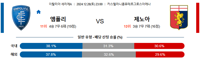 엠폴리 대 제노아 세리에A 12월28일 맞대결 생중계, 스포츠중계, 스포츠분석