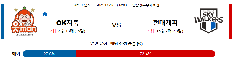 OK저축은행 대 현대캐피탈 V리그 12월28일 맞대결 생중계, 스포츠중계, 스포츠분석