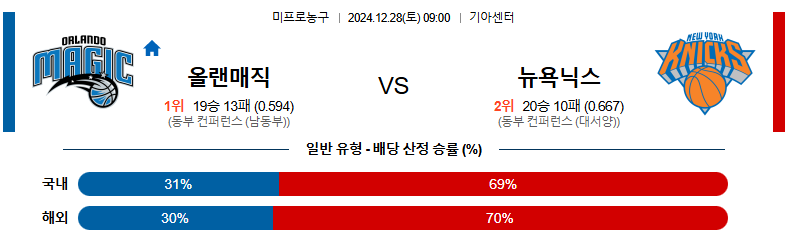 올랜도 대 뉴욕닉스 NBA 12월28일 맞대결 생중계, 스포츠중계, 스포츠분석