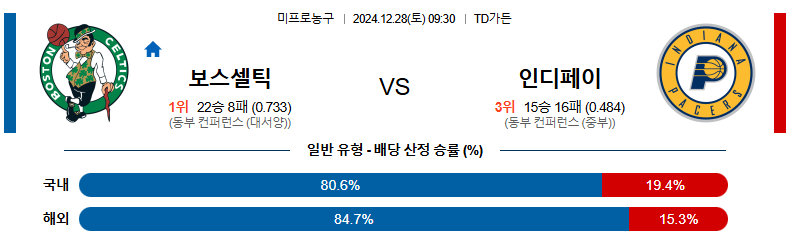 홈팀 : 보스턴 셀틱스(22승 8패)
