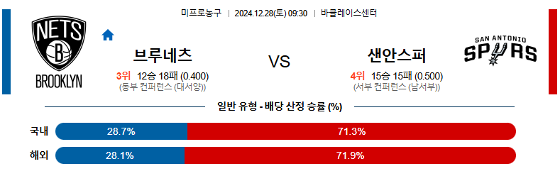 브루클린 대 샌안토니오 NBA 12월28일 맞대결 생중계, 스포츠중계, 스포츠분석