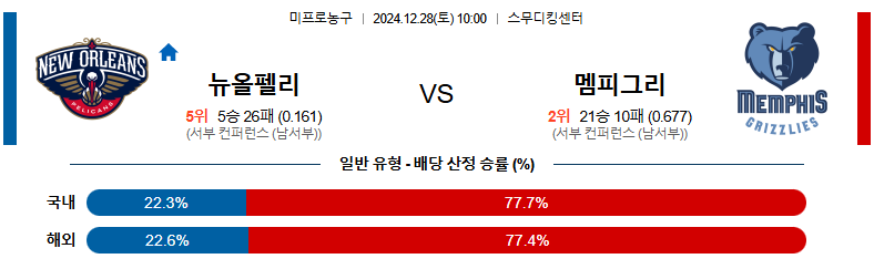 뉴올리언스 대 멤피스 NBA 12월28일 맞대결 생중계, 스포츠중계, 스포츠분석