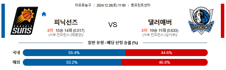 피닉스 대 댈러스 NBA 12월28일 맞대결 생중계, 스포츠중계, 스포츠분석