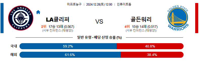 LA클리퍼스 대 골든스테이트 NBA 12월28일 맞대결 생중계, 스포츠중계, 스포츠분석