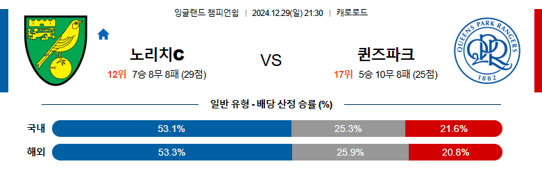 노리치시티 대 QPR 챔피언쉽 12월29일 맞대결 생중계, 스포츠중계, 스포츠분석