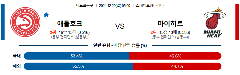 애틀란타 대 마이애미 NBA 12월29일 맞대결 생중계, 스포츠중계, 스포츠분석