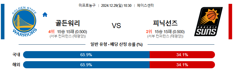 홈팀: 골든스테이트 워리어스 (15승 15패)