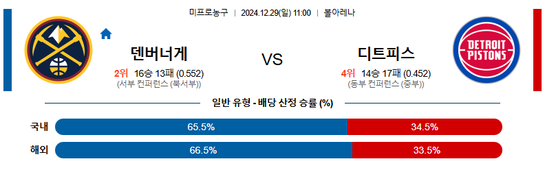 덴버 대 디트로이트 NBA 12월29일 맞대결 생중계, 스포츠중계, 스포츠분석