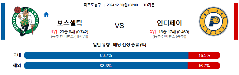 보스턴 대 인디애나 NBA 12월30일 맞대결 생중계, 스포츠중계, 스포츠분석