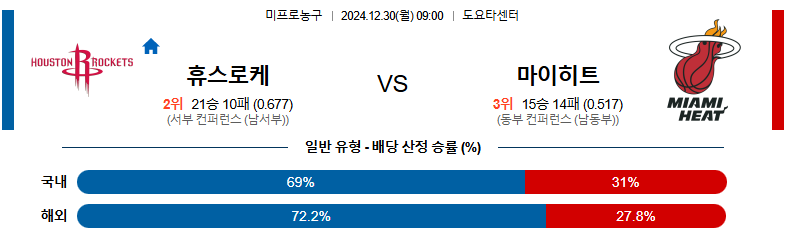 휴스턴 대 마이애미 NBA 12월30일 맞대결 생중계, 스포츠중계, 스포츠분석