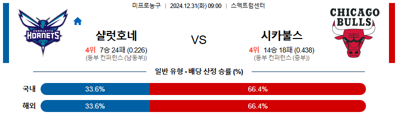 샬럿 대 시카고 NBA 12월31일 맞대결 생중계, 스포츠중계, 스포츠분석