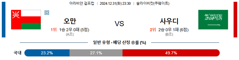 오만 대 사우디아라비아 걸프컵 12월31일 맞대결 생중계, 스포츠중계, 스포츠분석