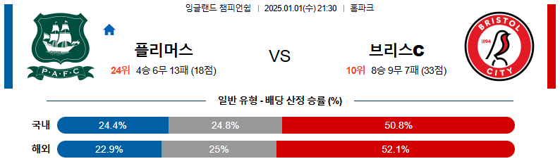플리머스 대 브리스톨시티 잉글랜드챔피언쉽 01월01일 맞대결 생중계, 스포츠중계, 스포츠분석