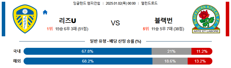 리즈 대 블랙번 잉글랜드챔피언쉽 01월02일 맞대결 생중계, 스포츠중계, 스포츠분석