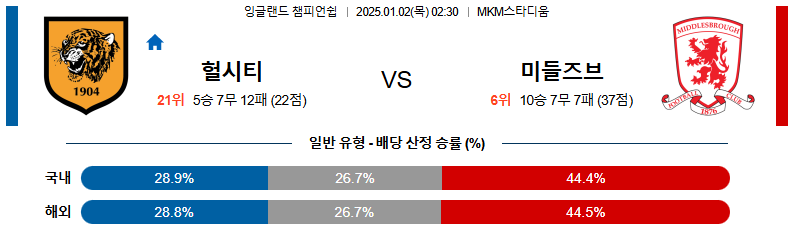 헐시티 대 미들즈브러 잉글랜드챔피언쉽 01월02일 맞대결 생중계, 스포츠중계, 스포츠분석