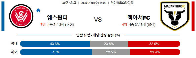 웨스턴시드니 대 맥아서 호주1부 01월01일 맞대결 생중계, 스포츠중계, 스포츠분석