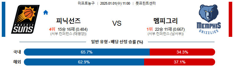 피닉스 대 멤피스 NBA 01월01일 맞대결 생중계, 스포츠중계, 스포츠분석