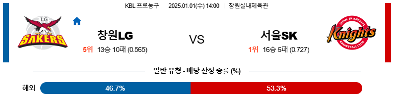 창원LG 대 서울SK KBL 01월01일 맞대결 생중계, 스포츠중계, 스포츠분석